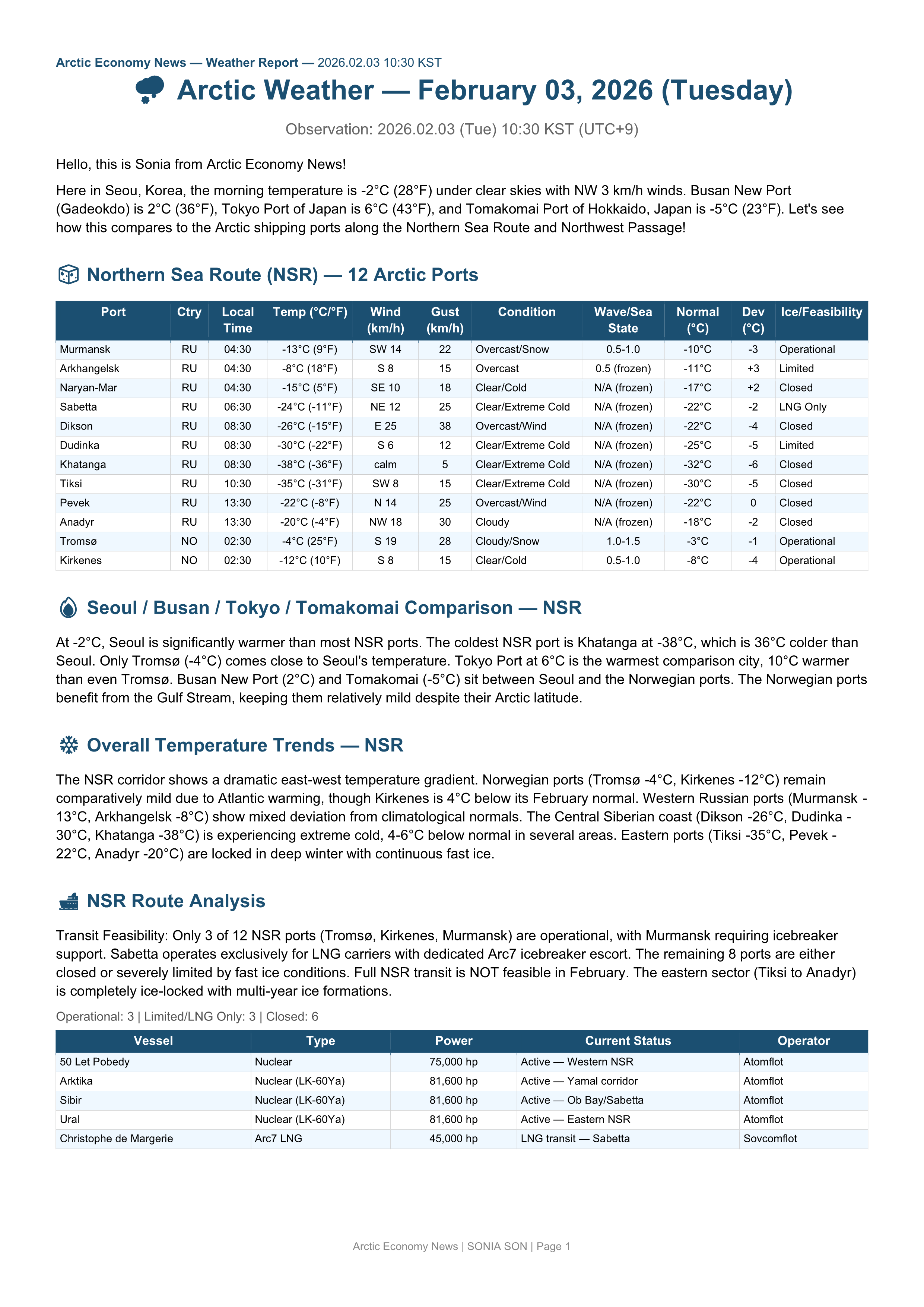 안녕하세요, 북극 경제 뉴스의 소니아입니다. 2026년 2...